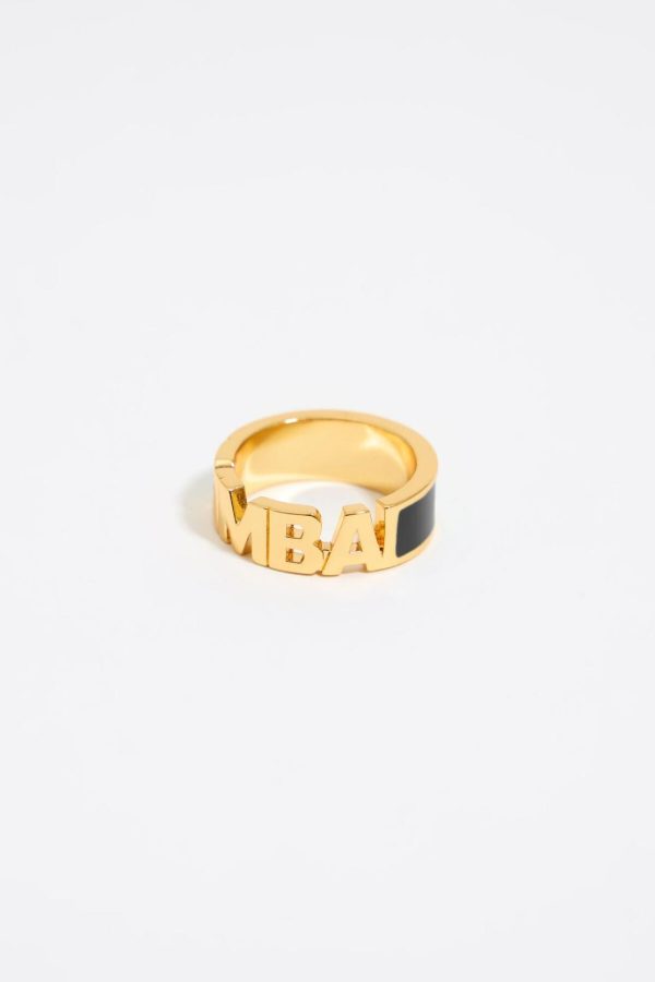 Bimba Y Lola Black Enamel Logo Ring for Women – Gold Brass Statement Jewelry