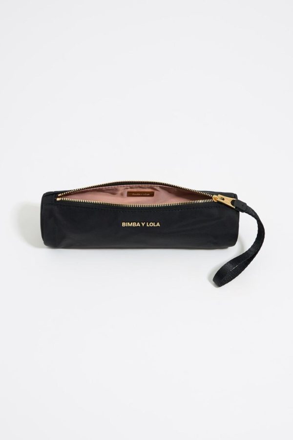 Bimba Y Lola Vanity Pouches | Women Black Nylon Cylindrical Make-up Case
