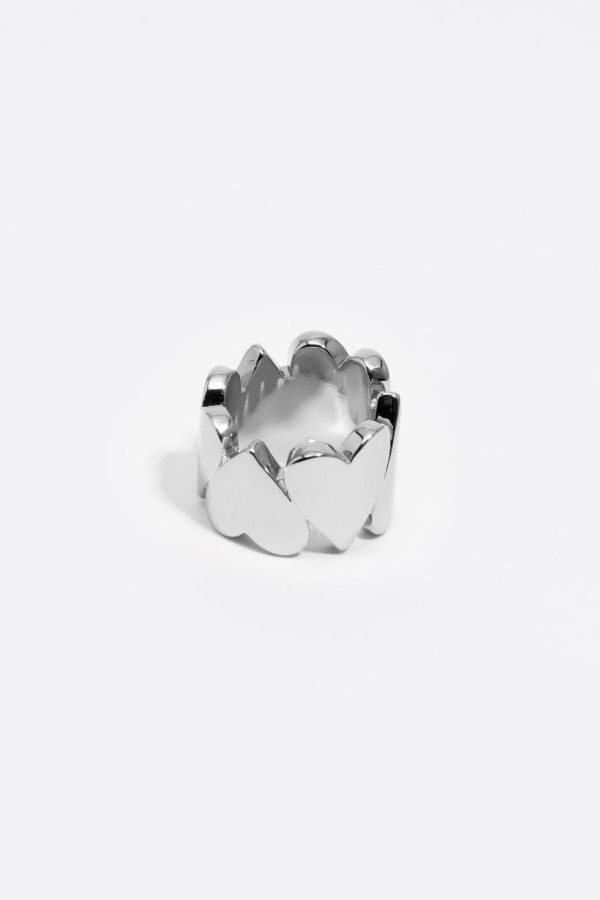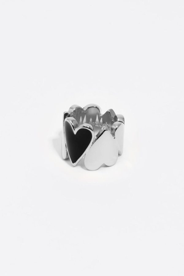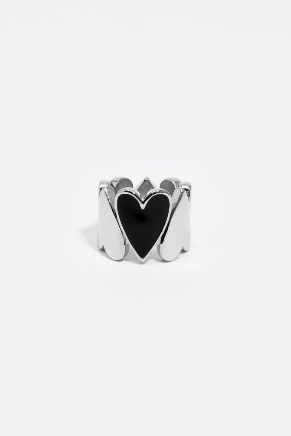 Bimba Y Lola Black & Silver Heart Ring for Women – Brass & Enamel Jewelry