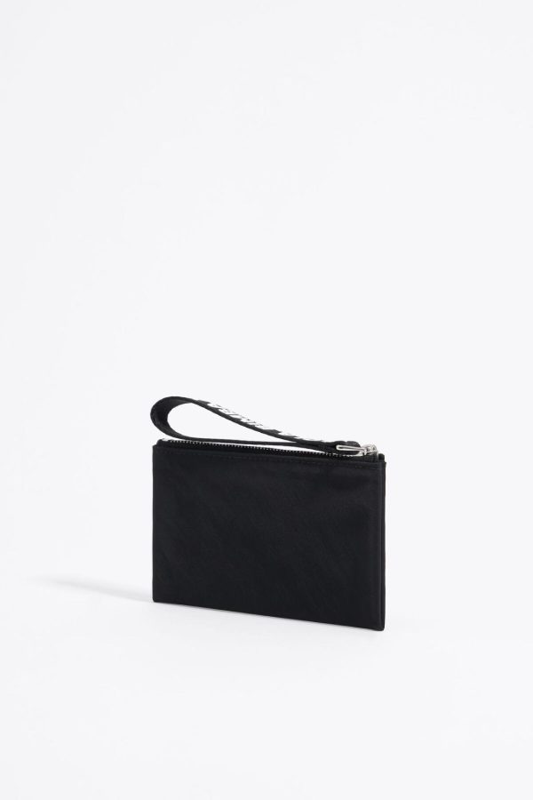 Nylon coin purse in black. Model with a zip fastener and logo fabric strap. Exterior customized with metallic logo.