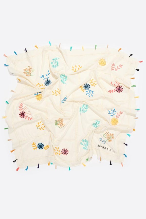 Bimba Y Lola Embroidered Floral Patchwork Cotton Shawl – Women’s Fashion Scarf