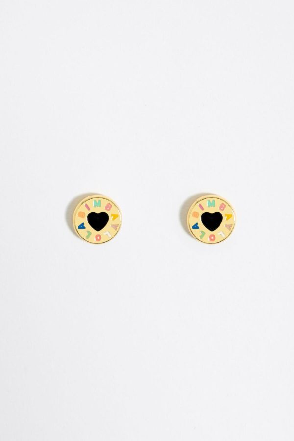 Bimba Y Lola Gold Heart Logo Earrings with Black Candy Design & Engraving
