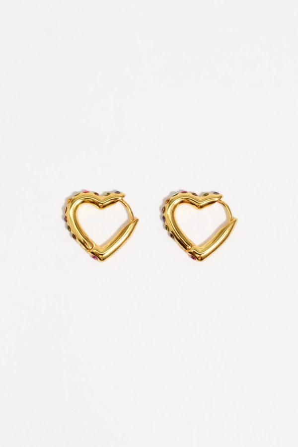 Bimba Y Lola Jewelry | Women Gold-tone Heart Hoop Multicolor Crystals Earrings
