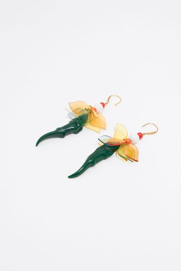 Bimba Y Lola Green Crocodile & Multicolor Leaf Earrings for Women