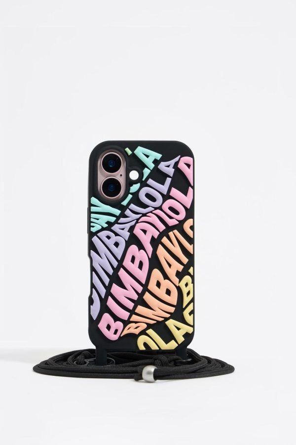 Bimba Y Lola iPhone 16 Silicone Case with Adjustable Strap – Multicolored Logo Design for Women