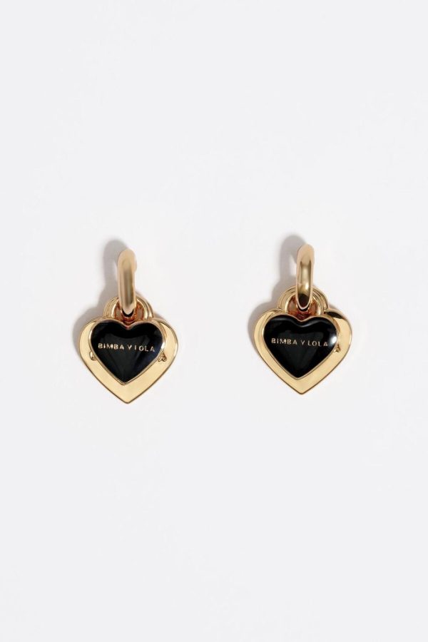 Bimba Y Lola Jewelry | Women Black And Gold Hearts Hoop Earrings