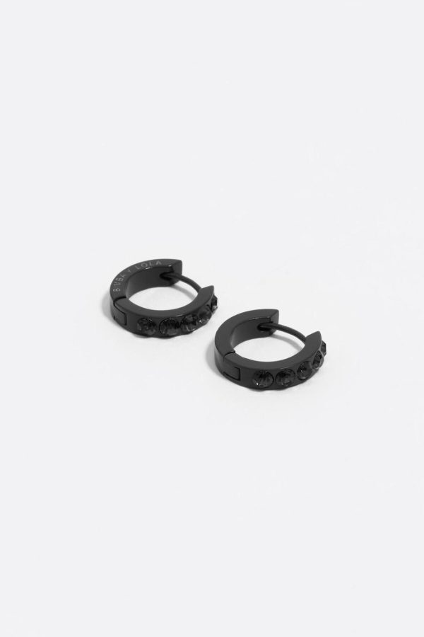Bimba Y Lola Jewelry | Women Black Crystals Hoop Earrings