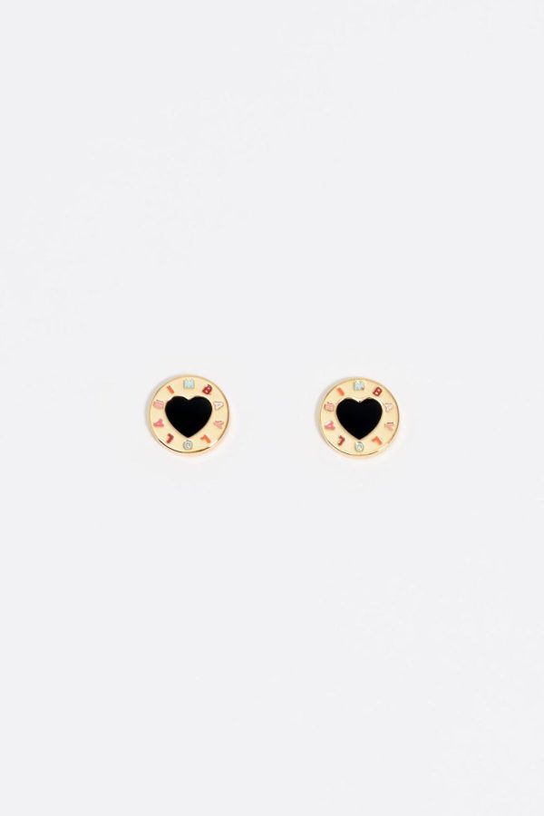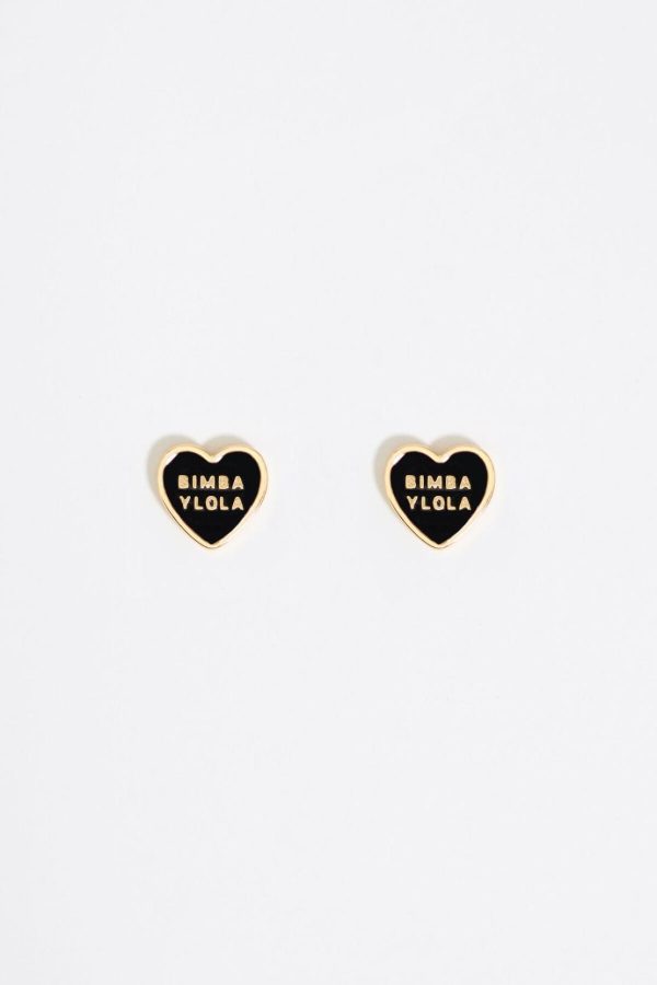 Bimba Y Lola Jewelry | Women Black Heart Logo Earrings
