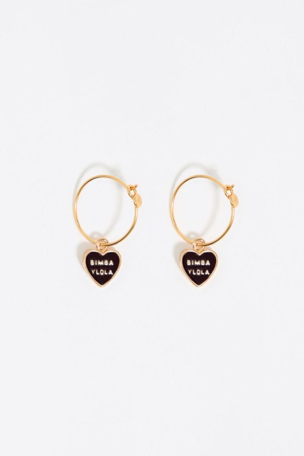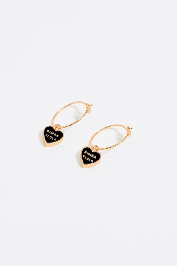 Bimba Y Lola Jewelry | Women Black Heart Logo Hoop Earrings