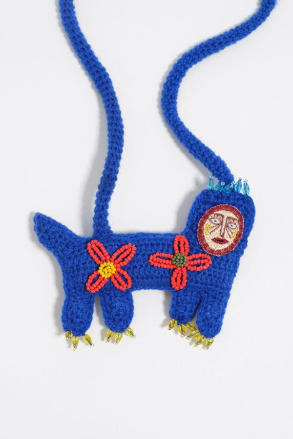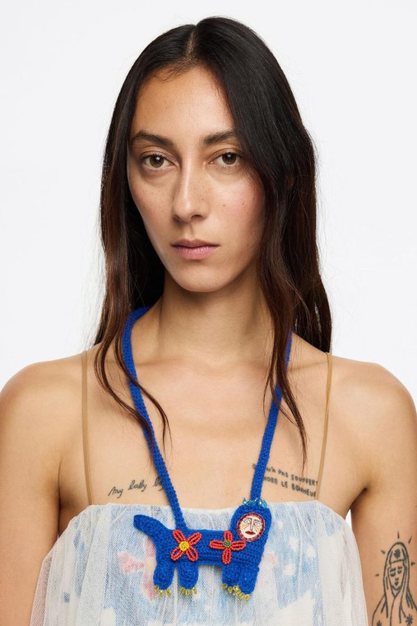 Bimba Y Lola Jewelry | Women Blue Embroidered Mask Crochet Necklace