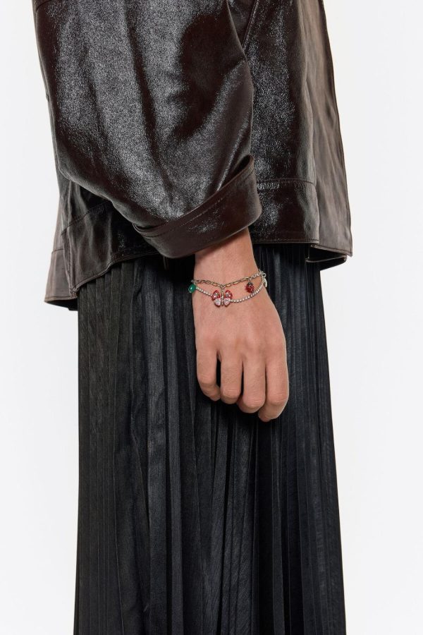 Double-layer chain and crystal bracelet with butterfly, ladybug and bee. Model customized with engraved logo.