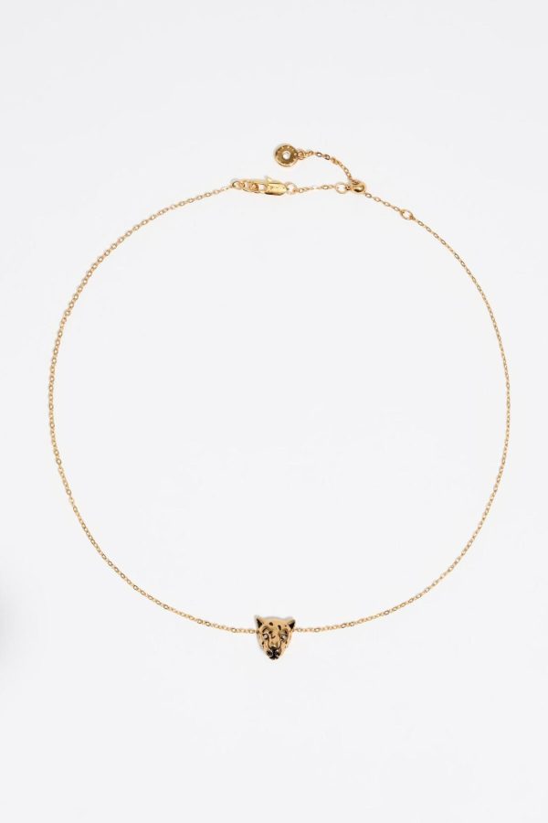 Chain necklace with dark gold-tone panther head.