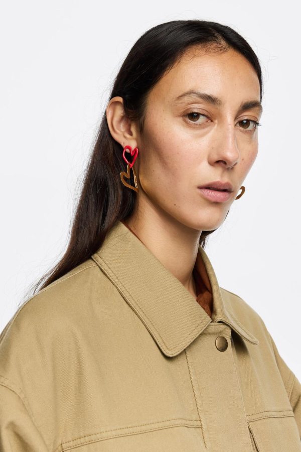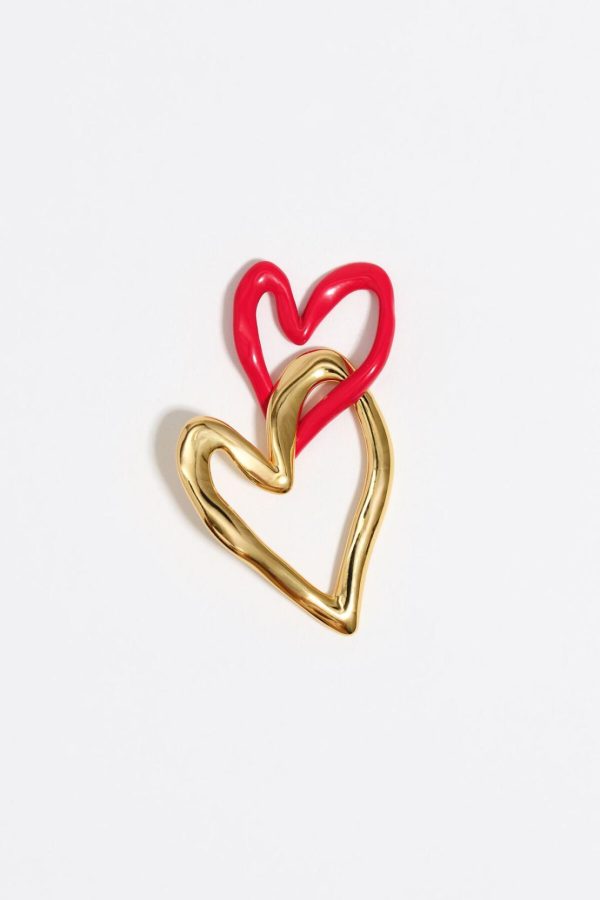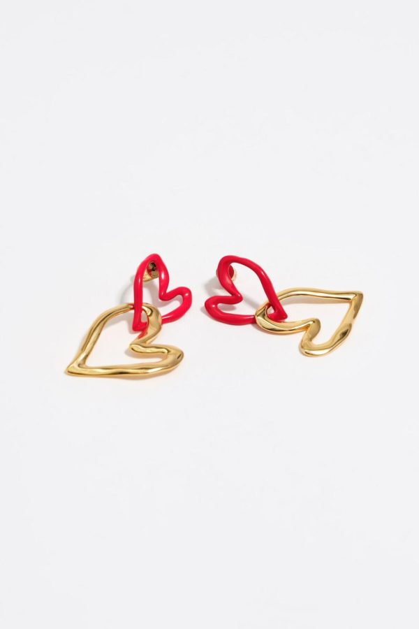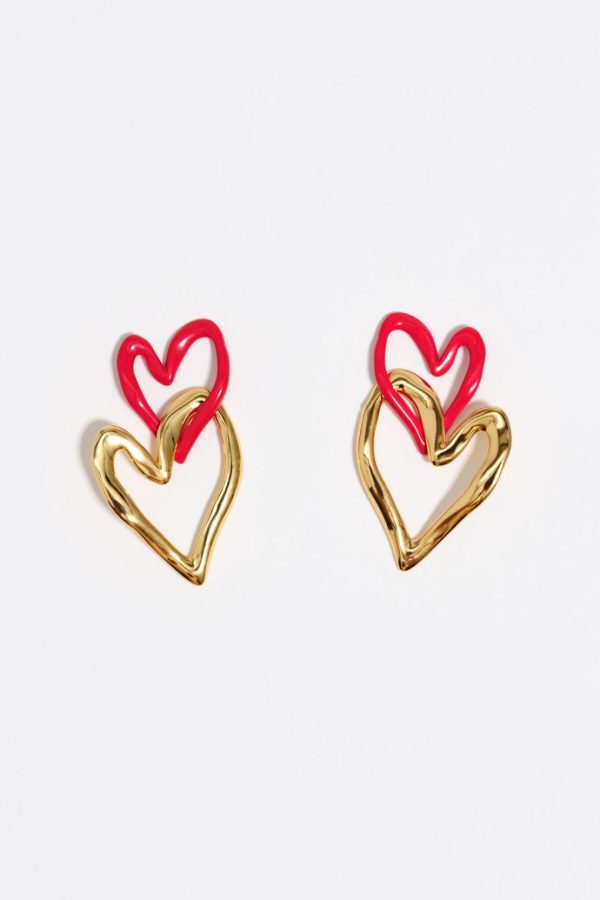 Bimba Y Lola Jewelry | Women Gold And Red Textured Double Heart Earrings