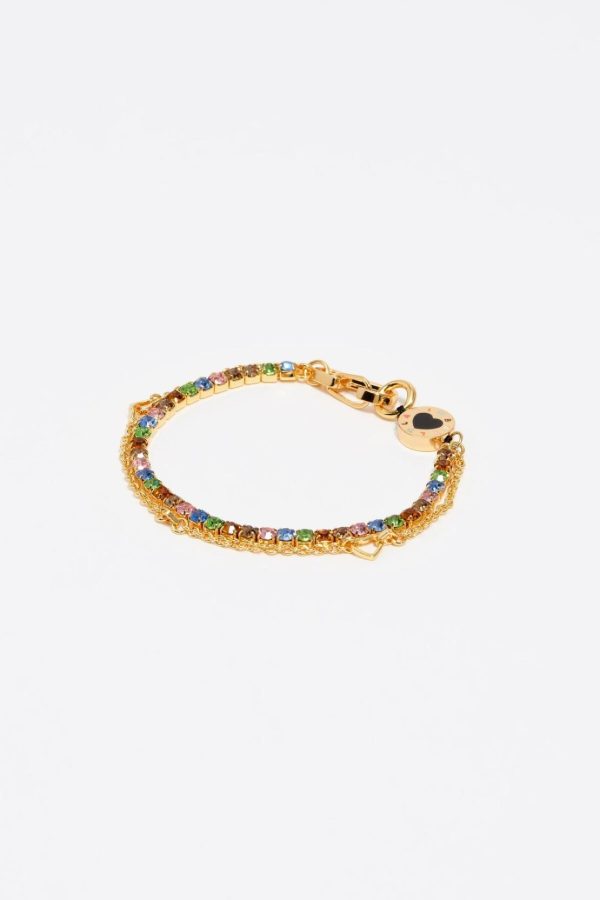 Bimba Y Lola Jewelry | Women Gold Double-chain Crystals Bracelet