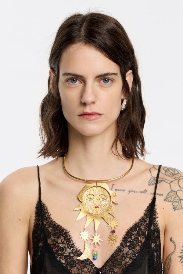 Bimba Y Lola Jewelry | Women Gold Sun And Moon Necklace
