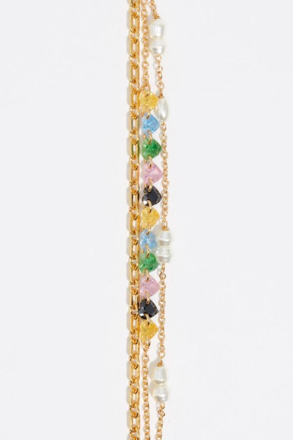 Bimba Y Lola Jewelry | Women Gold-tone Triple-layer Chain Heart Crystals Bracelet
