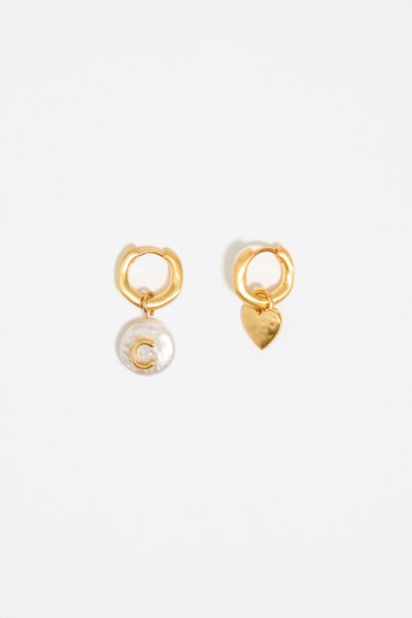 Bimba Y Lola Jewelry | Women Letter C Pearl And Heart Hoop Earrings