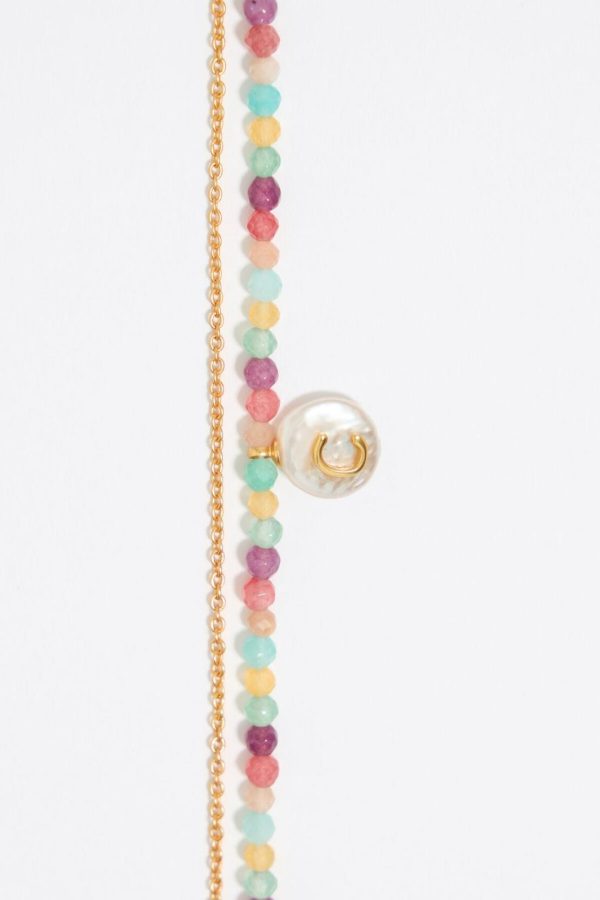 Bimba Y Lola Jewelry | Women Letter C Pearl And Multicolor Stones Necklace