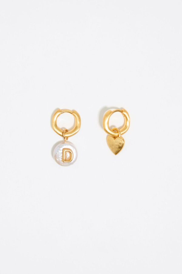 Bimba Y Lola Jewelry | Women Letter D Pearl And Heart Hoop Earrings