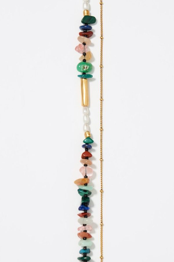 Bimba Y Lola Jewelry | Women Matte Gold-tone Double-layer Chain And Multicolor Stones Necklace