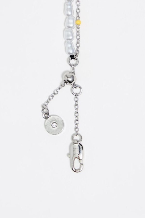 Bimba Y Lola Gold-Tone Pearl Heart Bracelet for Women – Brass Chain with Enamel & Glass Accents