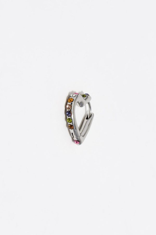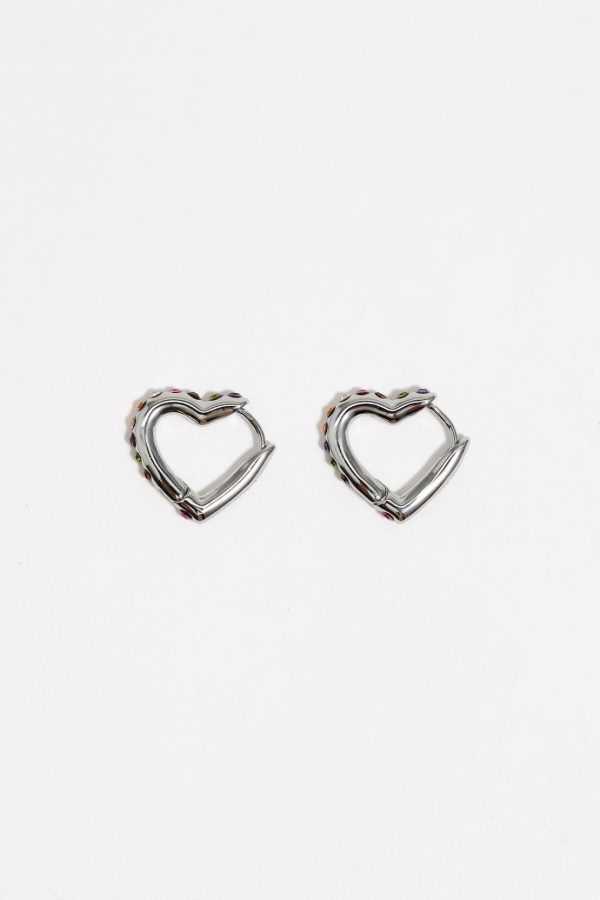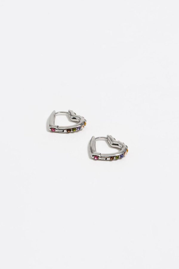 Bimba Y Lola Jewelry | Women Silver-tone Heart Hoop Multicolor Crystals Earrings