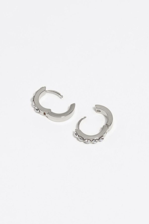Bimba Y Lola Jewelry | Women Silver-tone Hoop Crystals Earrings