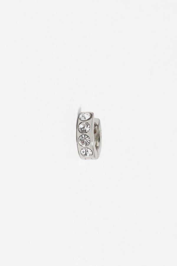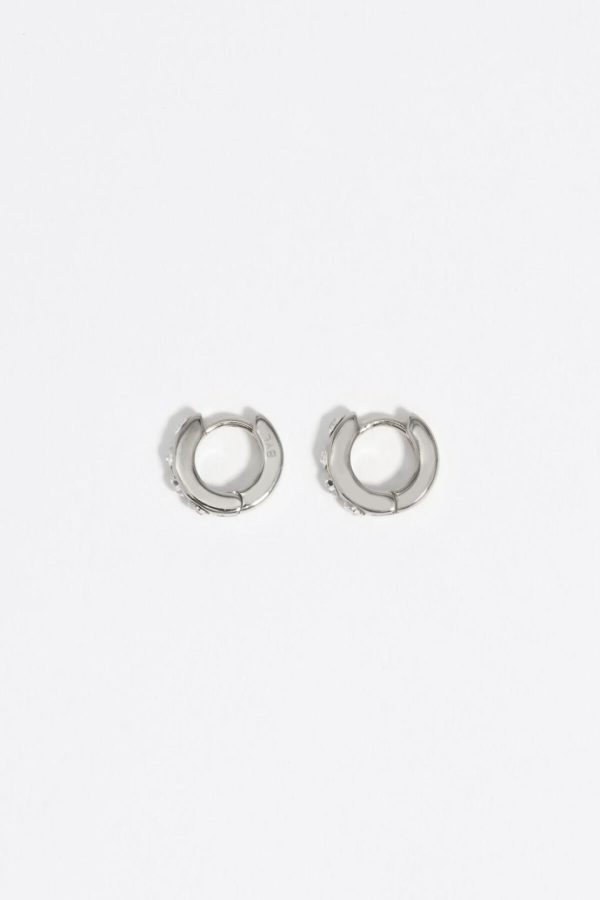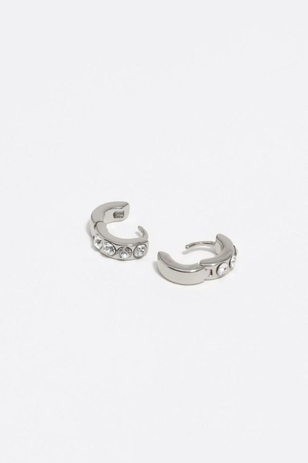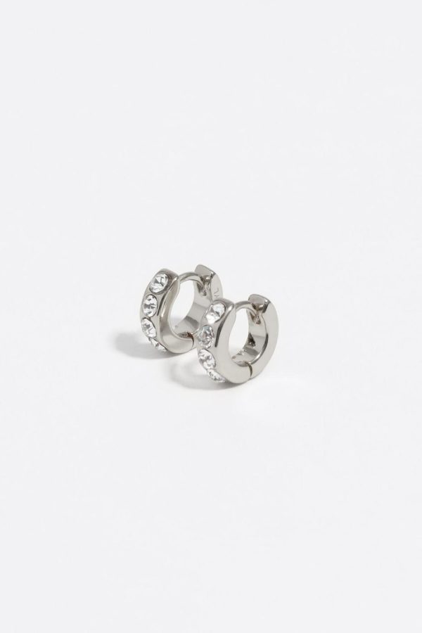 Mini hoop earrings in silver tone with crystals.
