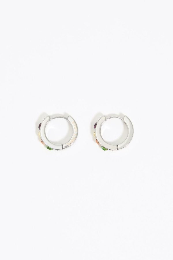 Bimba Y Lola Jewelry | Women Small Silver Hoop Earrings With Multicolor Crystals