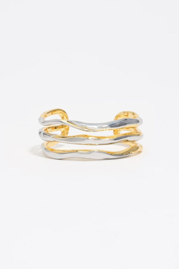 Two-tone triple rigid bracelet with texture.