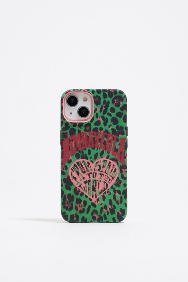 Bimba Y Lola Phone Cases | Women Green Leopard Heart IPhone 15 Case