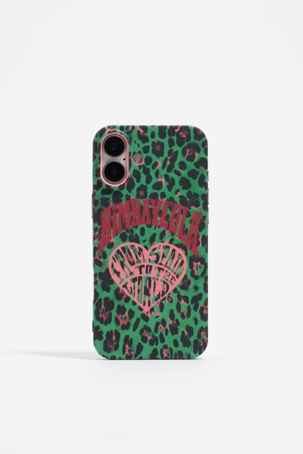 Bimba Y Lola Phone Cases | Women Green Leopard Heart IPhone 16 Plus Case
