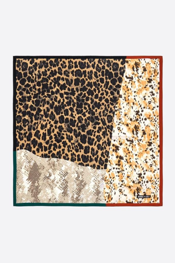 Bimba Y Lola Scarves | Women Beige Animal Print Patchwork Scarf With Contrast Borders
