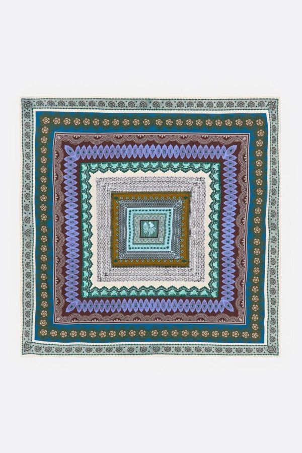 Lace scarf with concentric borders with a green background. 100% Recycled polyester.