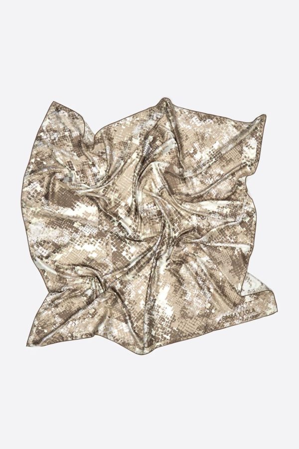 Scarf in taupe with Snake print. 100% recycled polyester.