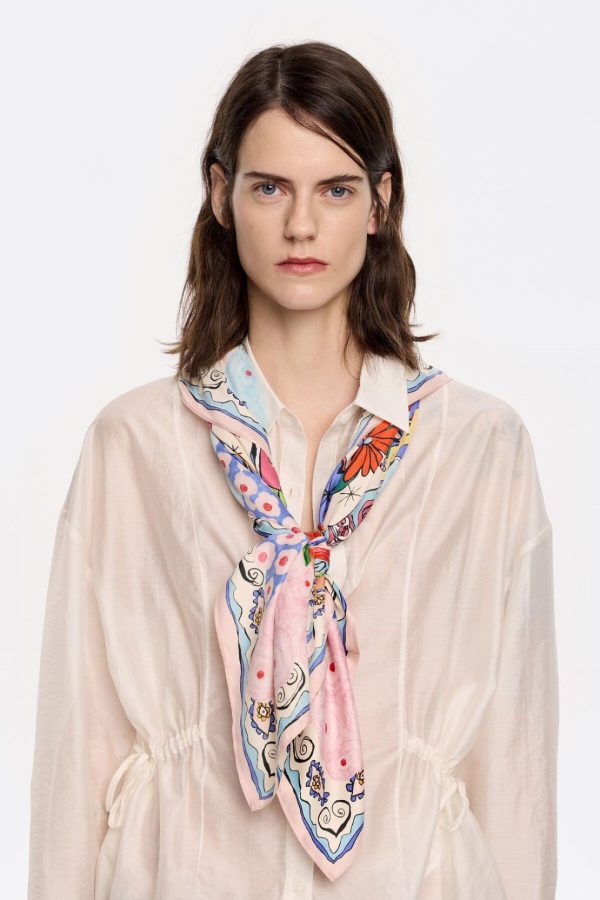 Scarf with flowers and lemons print on an off-white background. 100% Recycled polyester.