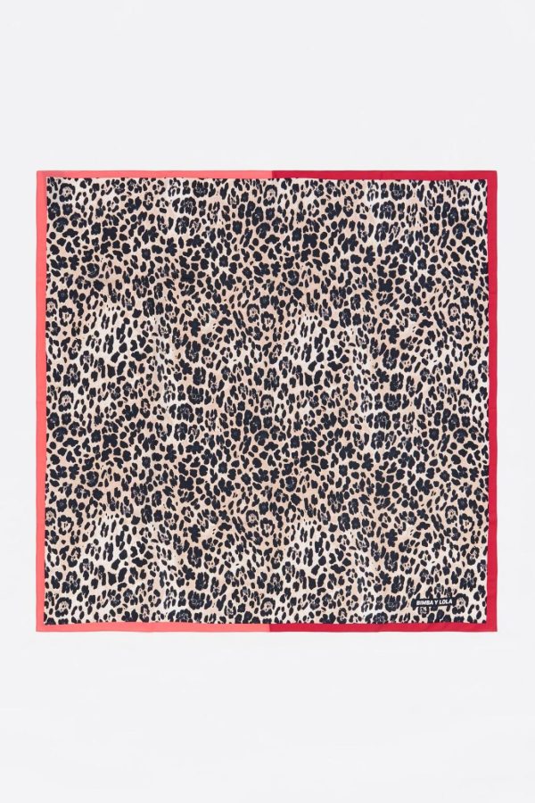 Scarf with leopard print on an off-white background and contrast border. 100% Recycled polyester.