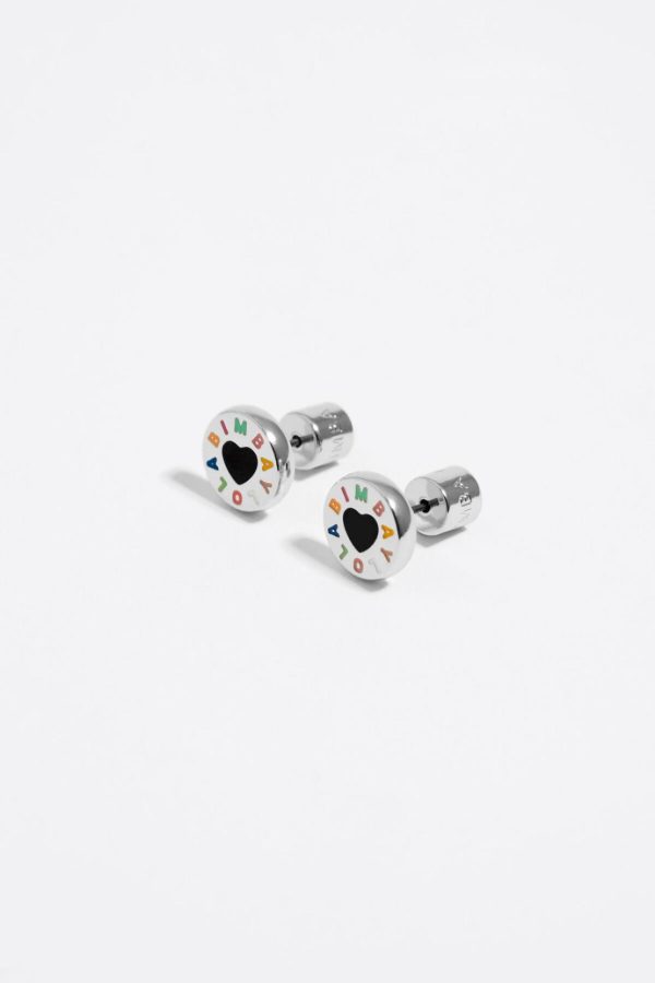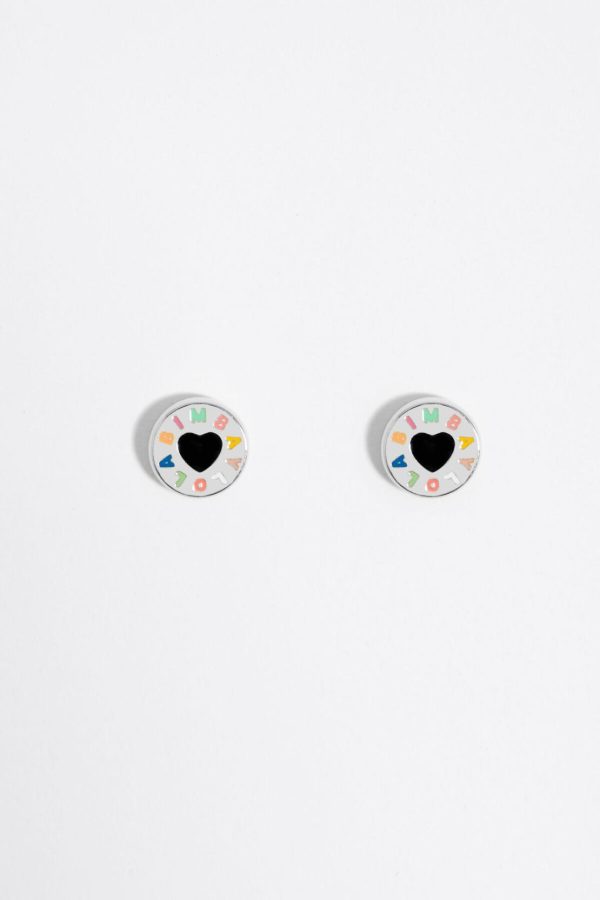 Bimba Y Lola Silver Heart Logo Earrings for Women – Black Enamel Press-Stud Fastener