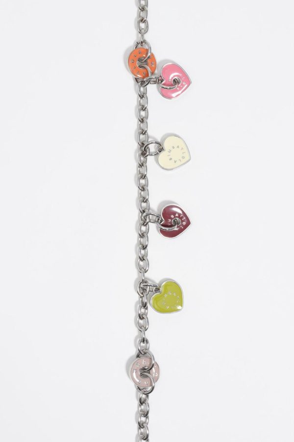 Bimba Y Lola Silver Heart Logo Necklace for Women – Multicolor Enamel Pendant