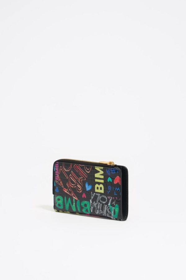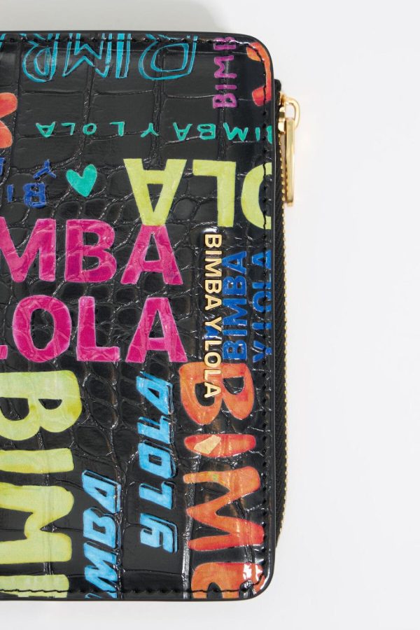 Bimba Y Lola Small Wallets | Women Black Mock Croc BIMBA Logos Purse