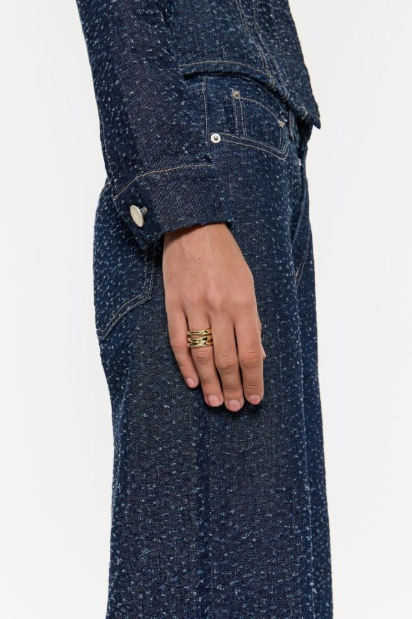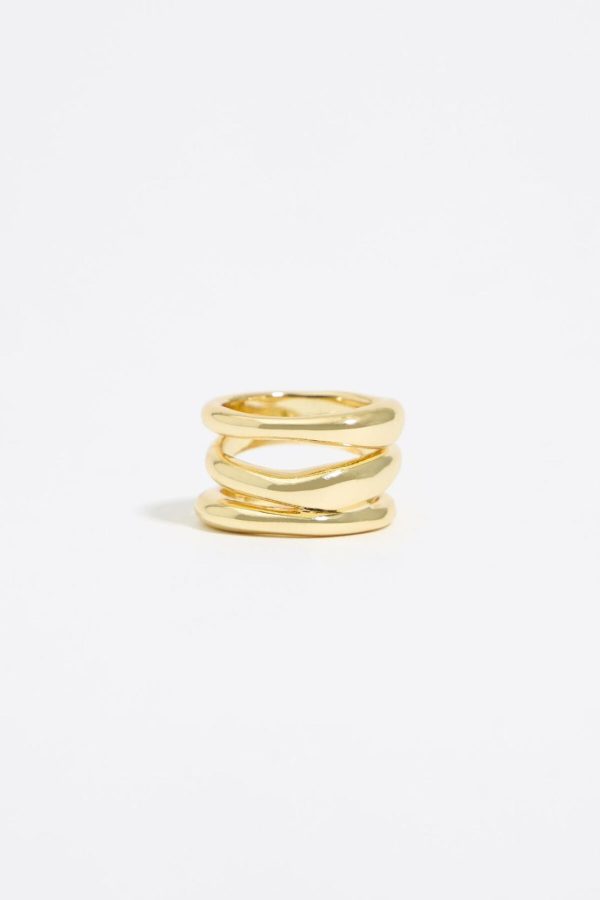 Bimba Y Lola Textured Gold Three-Band Ring for Women