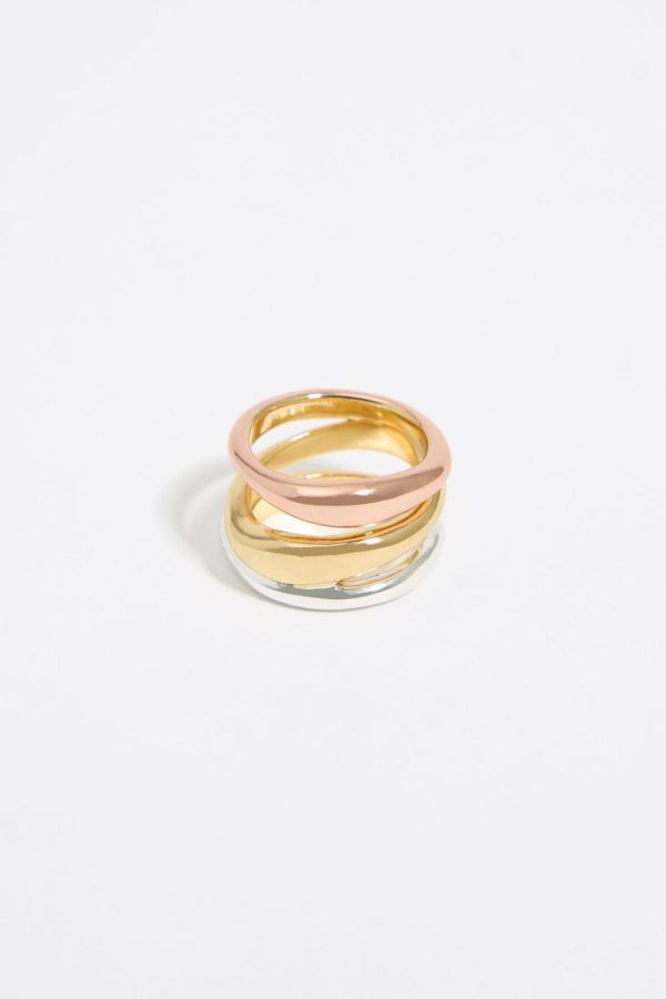 Bimba Y Lola Jewelry | Women Three-tone Textured Bands Ring