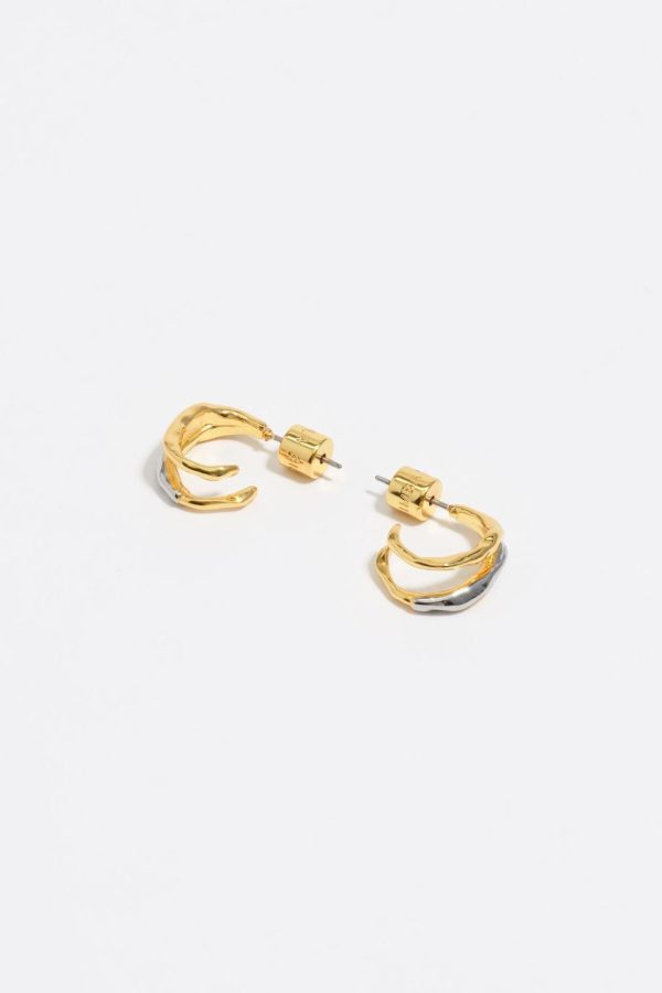 Bimba Y Lola Two-Tone Textured Double Hoop Earrings for Women