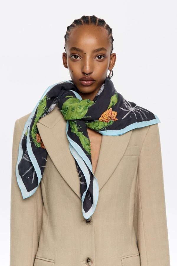Bimba Y Lola Women’s Beaded Cactus Print Scarf – Black Lyocell & Viscose