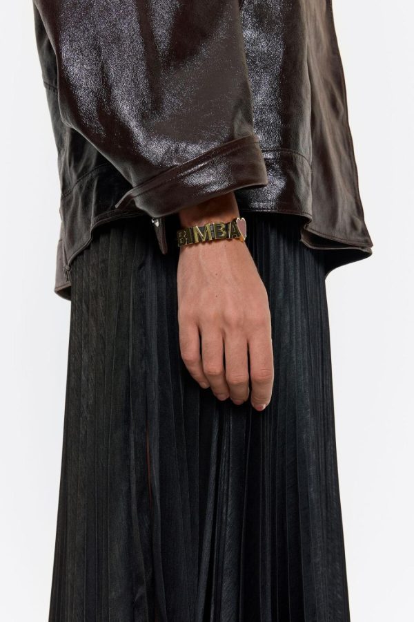 Bimba Y Lola Women’s Black Leather Bracelet with Gold Logo & Red Glitter Heart
