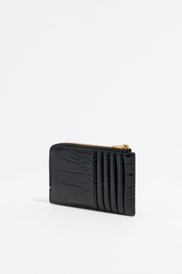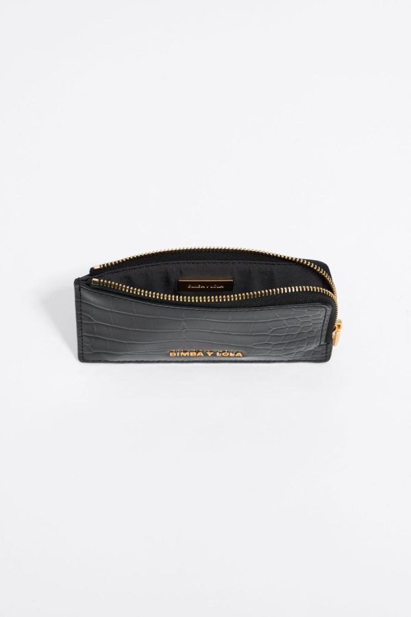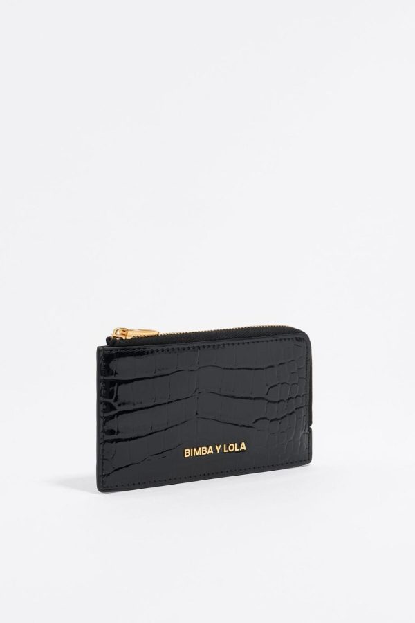 Bimba Y Lola Small Wallets | Women Black Mock Croc Card Holder/coin Purse