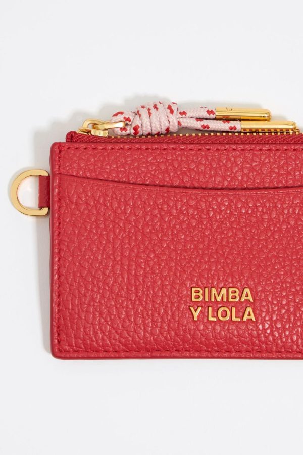 Bimba Y Lola Women’s Poppy Red Leather Card Holder with Gold Logo & Cord Pull